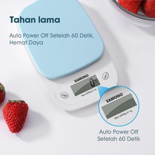 Detail Timbangan Dapur SAMONO SW-KS01 Digital Elektrik LCD Display Kualitas Premium 5KG Biru