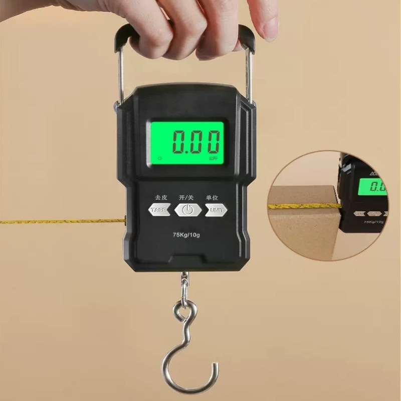 75Kg/10g: 1. Akurasi tinggi: kapasitas 75kg dengan nilai pembagian 10g. 2. Pita pengukur: pita 1 meter bawaan dapat mengukur panjang benda.