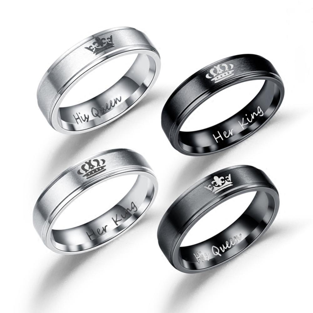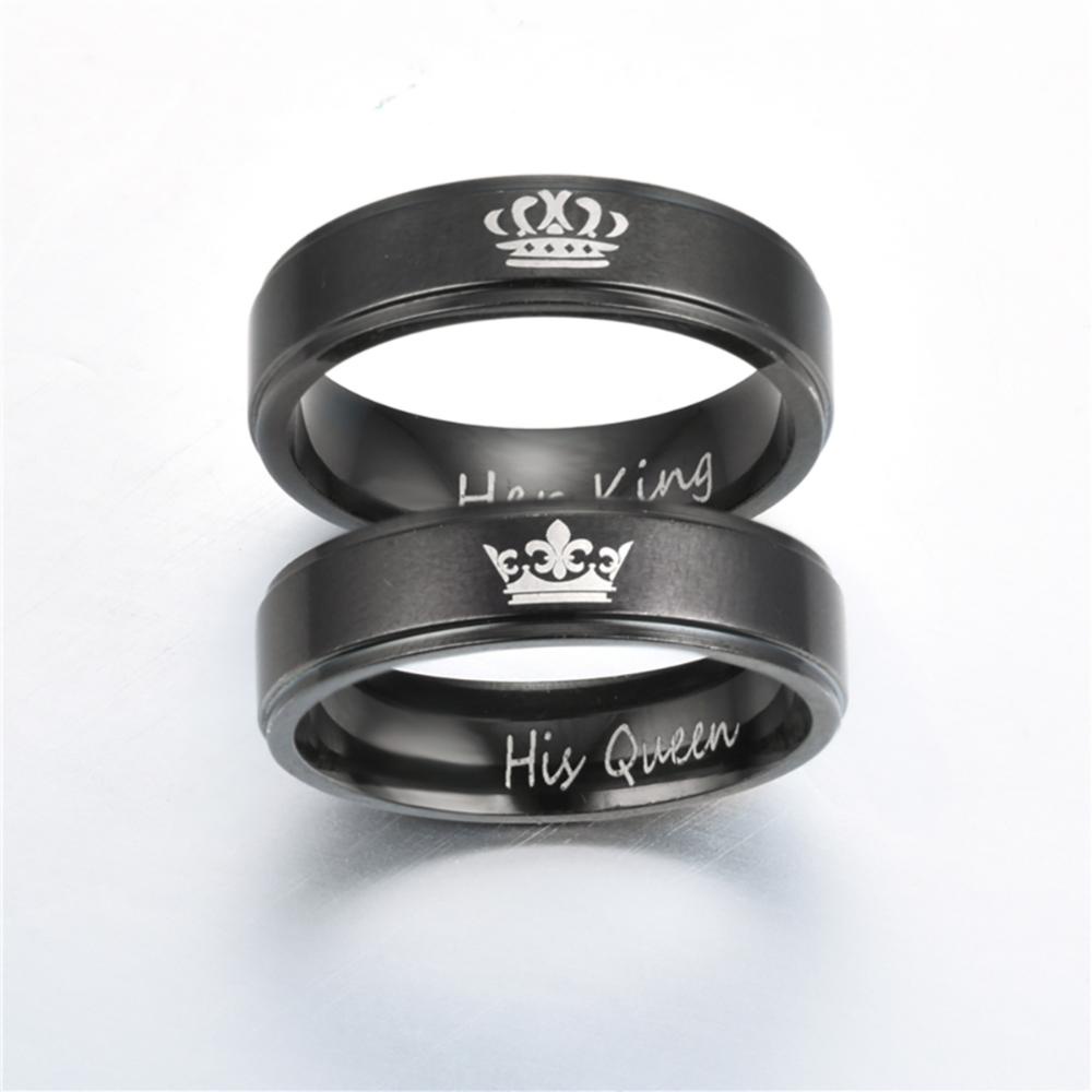 Aksesoris Fashion > Cincin > Timekey 6mm Fashion Stainless Steel Cincin His Queen Her King Pasangan Perak Hitam Mahkota Pasangan Perhiasan Anniversary Hadiah Hari Valentine E2L6