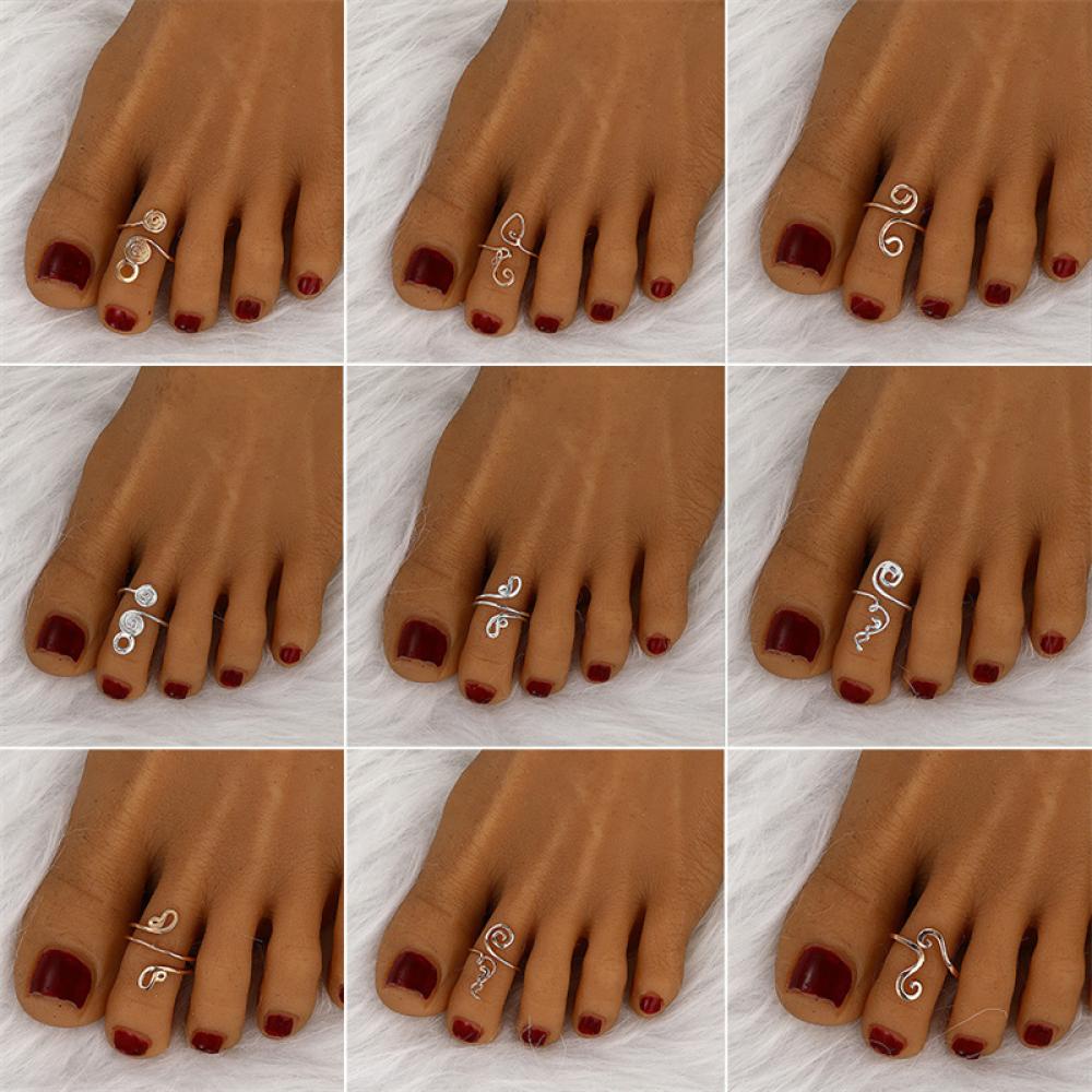 Detail Timekey Cincin Kaki Bahan Metal Desain Geometri Hollow Gaya Simple Untuk Wanita S8U2
