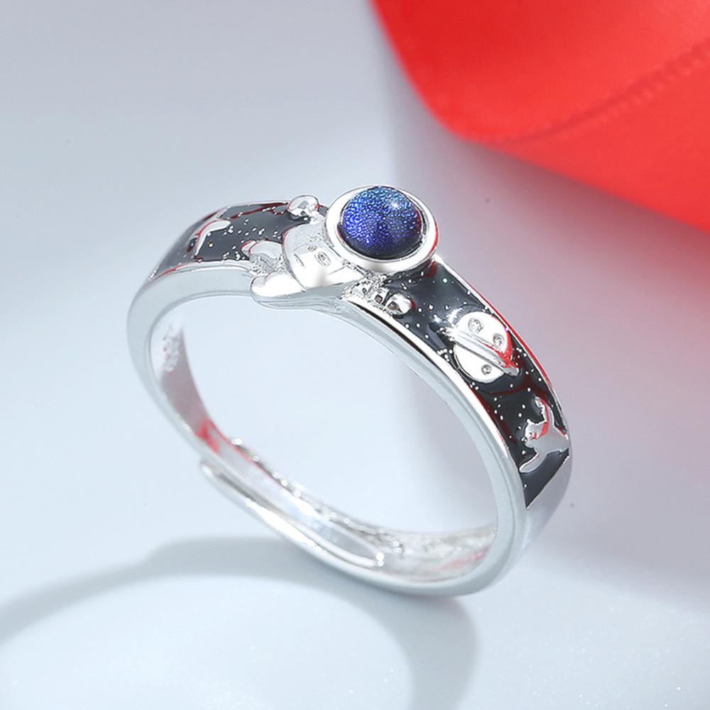Detail Timekey Fashion Kreatif Mengkilap Pasangan Cincin Adjustable Astronot Pasangan Rings Perhiasan Hadiah Untuk Pria Wanita C2L4