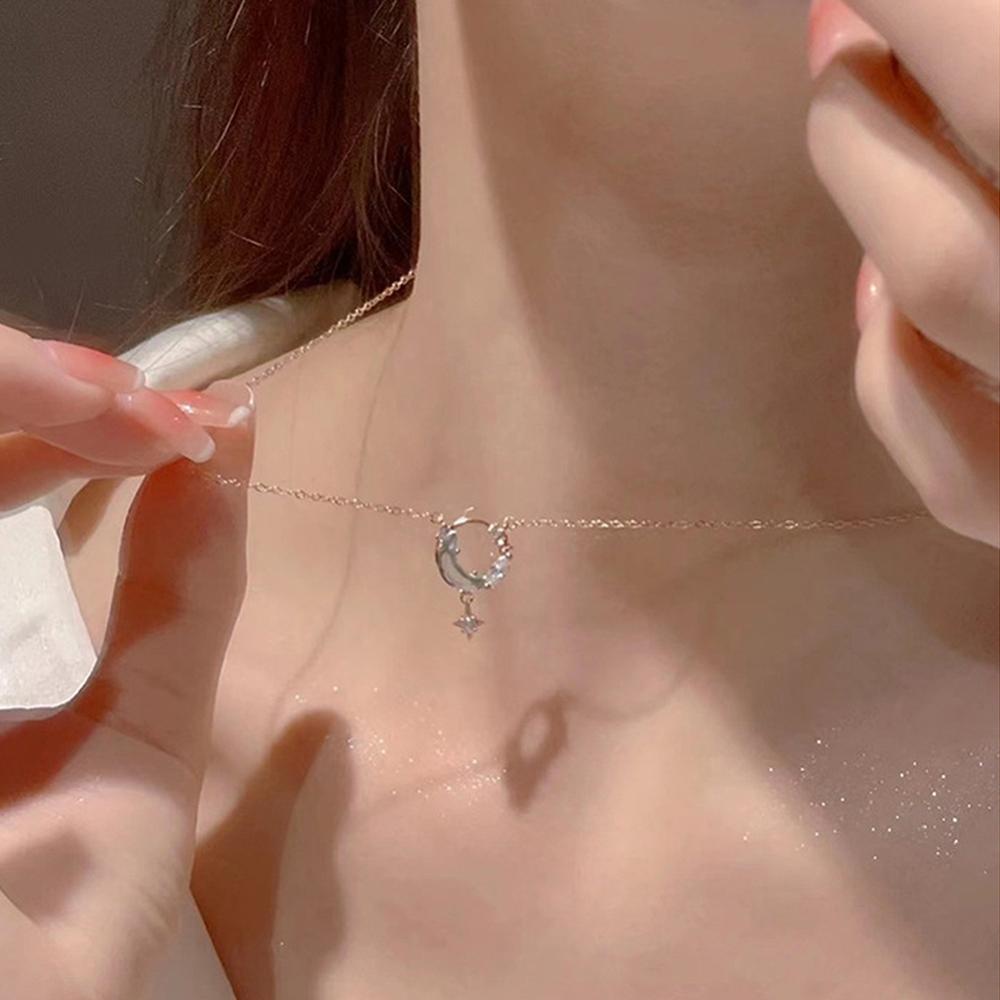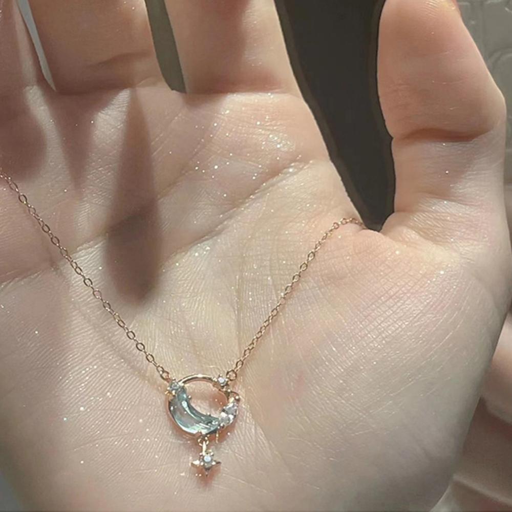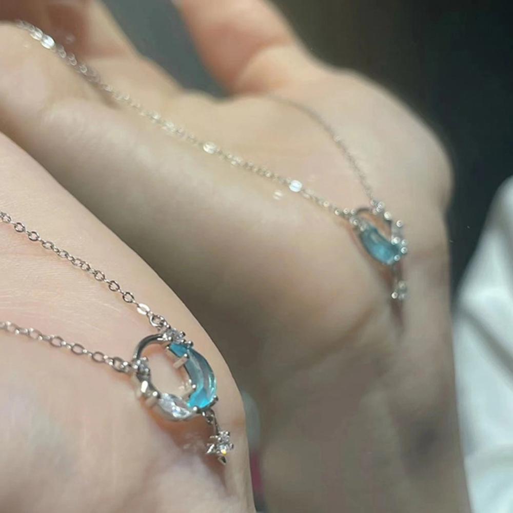 Detail Timekey Kalung Bulan Bintang Biru Mode Bulan Bintang Temperamen Rantai Tulang Selangka Kalung Wanita Perhiasan Aksesori D7G4