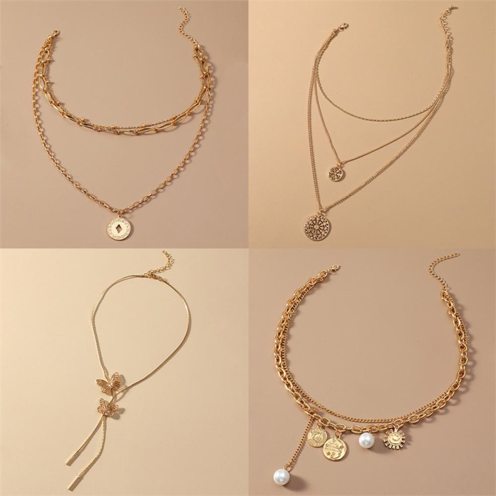 Detail Timekey Kalung Rantai Alloy Multi Layer Hias Liontin Gaya Vintage Kreatif Untuk Wanita J2N8