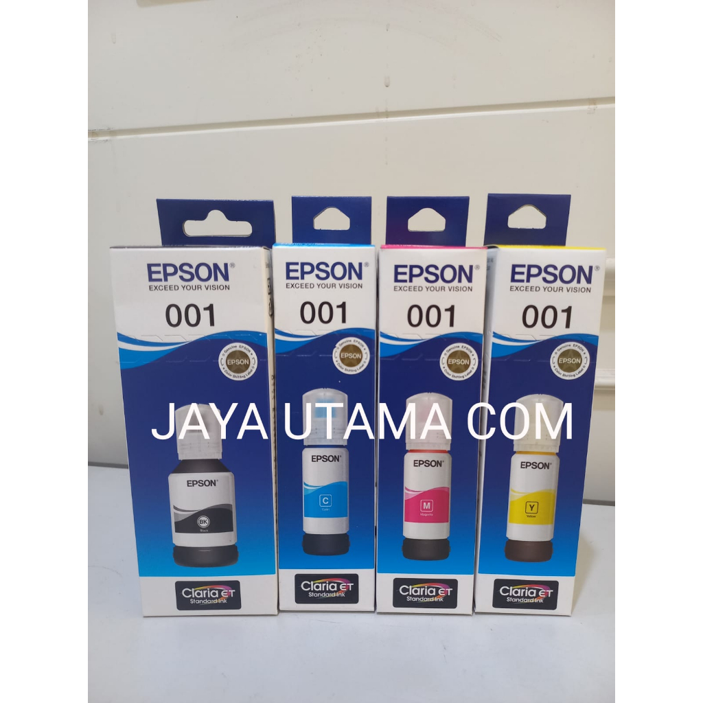 Spesifikasi : Produk : Tinta Original 100% Brand : Epson Tipe : 001 Isi :127ML dan 70ML Warna : -BLACK (127ML) -CYAN (70ML) -MAGENTA (70ML) -YELLOW (70ML)