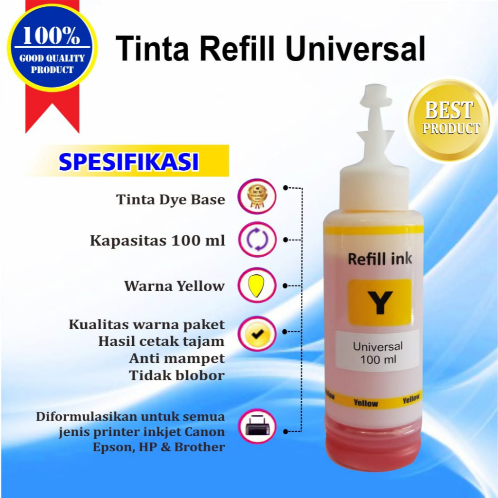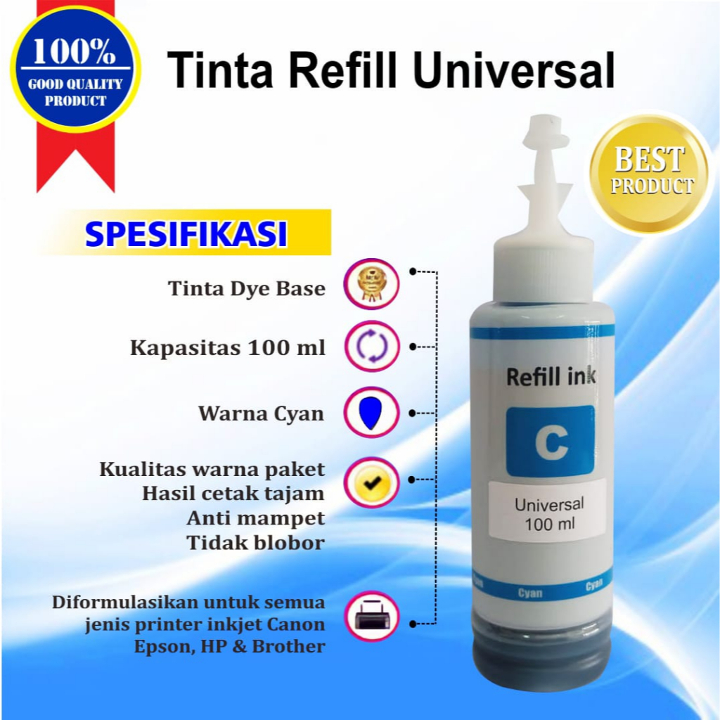 - Tinta Dye Base - Kapasitas 100 ml - Warna CMYK(Cyan Magenta Yellow Black) - Kualitas warna pekat - Hasil cetak tajam - Anti mampet - Tidak blobor - Tutup Model Krucut, dapat mempermudah proses pengisian ulang tinta pada catridge