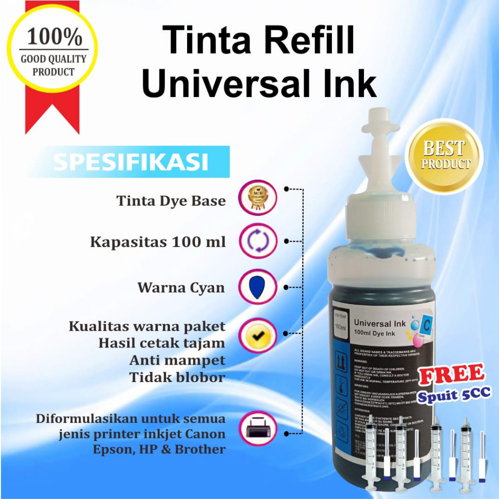 Tinta Refill Printer HP, Dye Base 100ml, Tinta Inkjet tutup model krucut, Tinta Inkjet