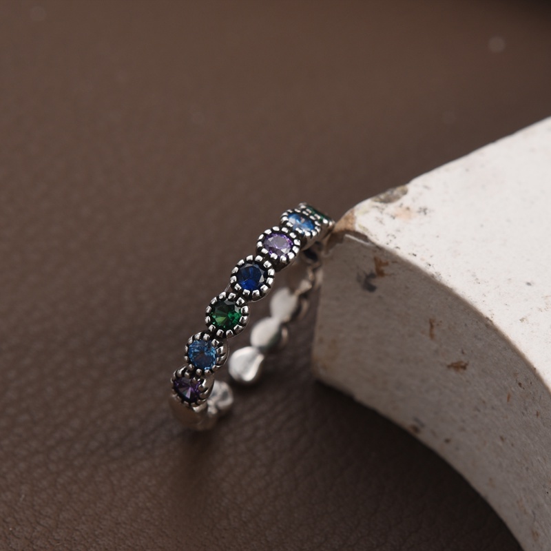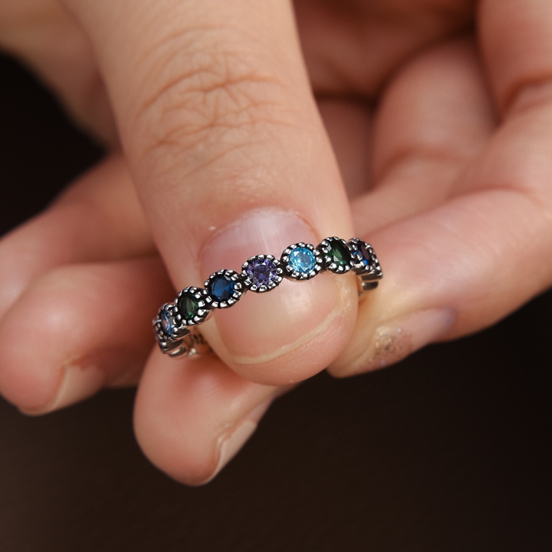 Detail Tipe Geometris Warna-Warni Tembaga Bulat Zirconia Cincin Baris Tunggal Pave Cincin Pernikahan Band Ring Pesta Fashion Perhiasan Untuk Wanita