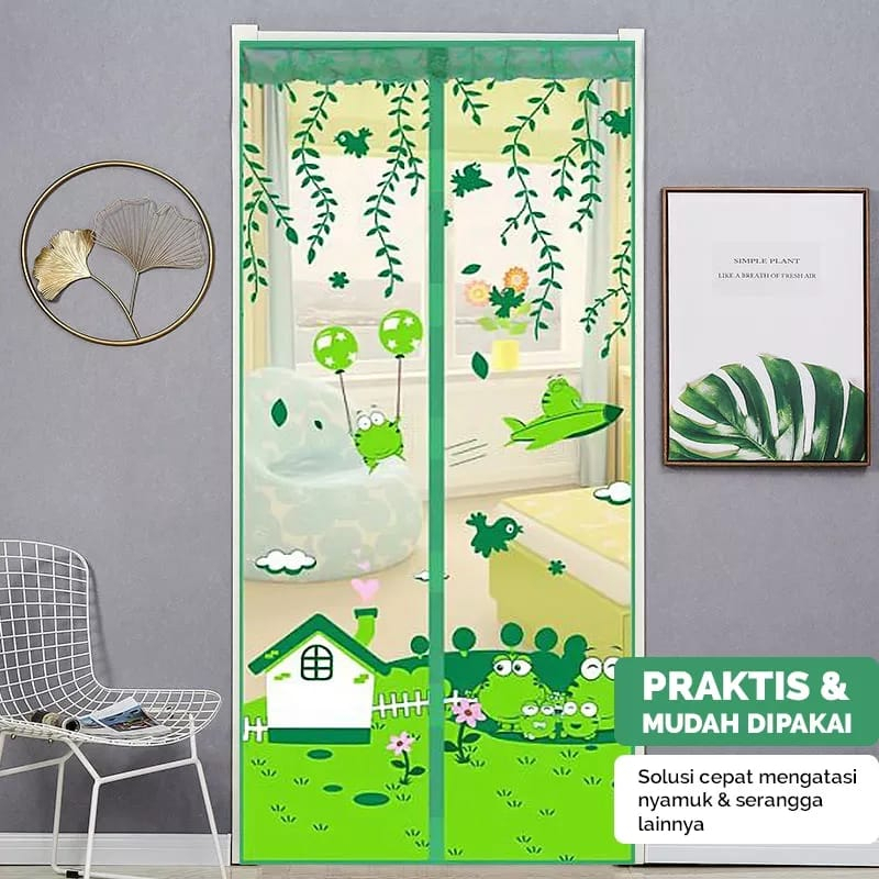 Manfaat / Keunggulan : -Menghalangi nyamuk masuk dalam ruangan/kamar tidur. -Pintu dapat terus di buka sehingga ada pergantian udara di ruangan tanpa takut nyamuk masuk. -Pintu dapat selalu terbuka tanpa harus merasa canggung jika terlihat orang yang melewati. -Disaat mati lampu juga kita bisa tetap membiarkan pintu terbuka tanpa khawatir debu atau serangga masuk. -Tirai pintu magnetic menutup pintu otomatis dengan segera setelah kita lewati.