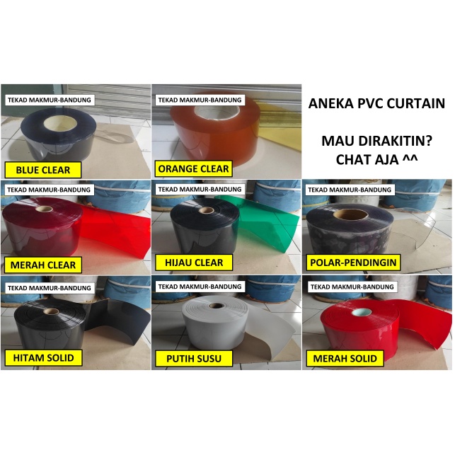 Hello Agan-Agan. Cari yang Tirai PVC Curtain Plastik? Kami Tekad Makmur ada ^^ .Spek sebagai berikut : 1.Tebal toleransi 2 mm, ukuran lebar 20 cm. 2.Tidak Lengket & berminyak.