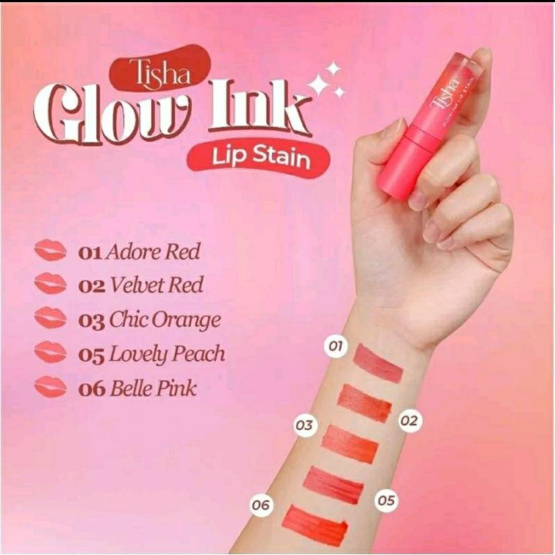 Tisha Glow Ink Lip Stain merupakan lip tint yang diperkaya oleh Vitamin E dan Marula Oil sebagai moisturizing dan memberikan warna cerah alami dan berkilau. Memiliki tekstur yang ringan dan mudah diaplikasikan membantu bibir tetap lembab dan warna yang tahan lama.