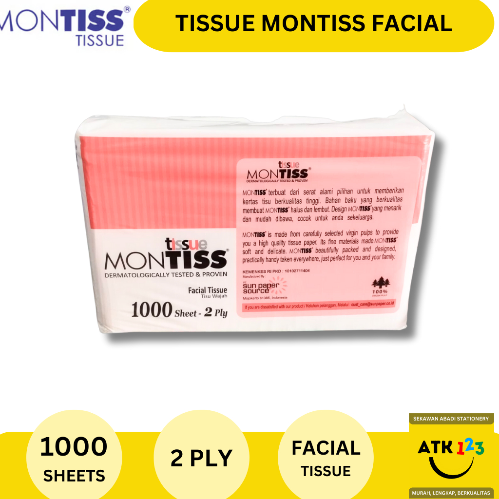 Perlengkapan Rumah > Kebersihan & Binatu > Tisu & Tisu Kertas > Tissue Facial / Tisu Wajah Montiss 1000 sheets 2 ply