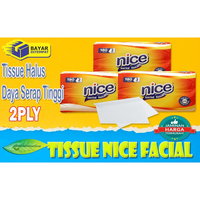 NICE terbuat dari 100% serat alami ( Virgin plantation Pulp ) diproses secara higienis, menghasilkan tissue halus berkualitas tinggi bagi keluarga anda. kualitas tissue Nice sudah menjadi tradisi . Non perfumed sehingga aman digunakan unruk wajah dan seluruh anggota anda