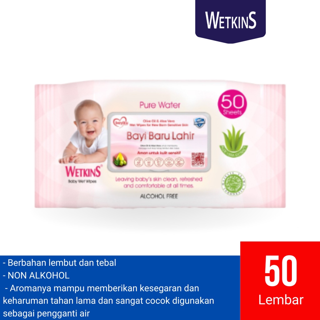 Wetkins Bayi Baru Lahir merupakan tissue basah yang dibuat khusus sehingga mampu menjaga kulit Anda dan keluarga. Sangat cocok digunakan untuk Bayi yang baru lahir. Memiliki Kandungan Aloevera yang membantu memelihara dan menjaga kenyamanan kulit halus bayi yang lembut serta dapat mengangkat kotoran dengan mudah. Dikombinasikan dengan kandungan Olive Oil untuk membantu menjaga kelembaban kulit bayi baru lahir tanpa menyebabkan iritasi.