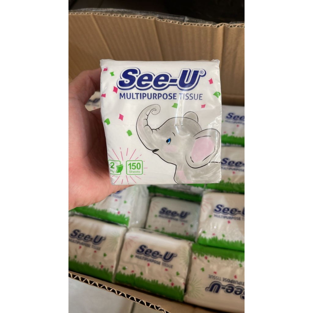 Tissue SEE-U Pop Up Gajah / Tissue Multipurpose / Tisu Meja Makan / Tissue Kecil 150 Sheet 2ply - Harga : per pack - Isi per pack : 150 sheets x 1 ply - Ukuran pack : 9x10x7 cm Tisu Praktis bisa Serba Guna, Tisu EMBOS (tidak mudah lengket)