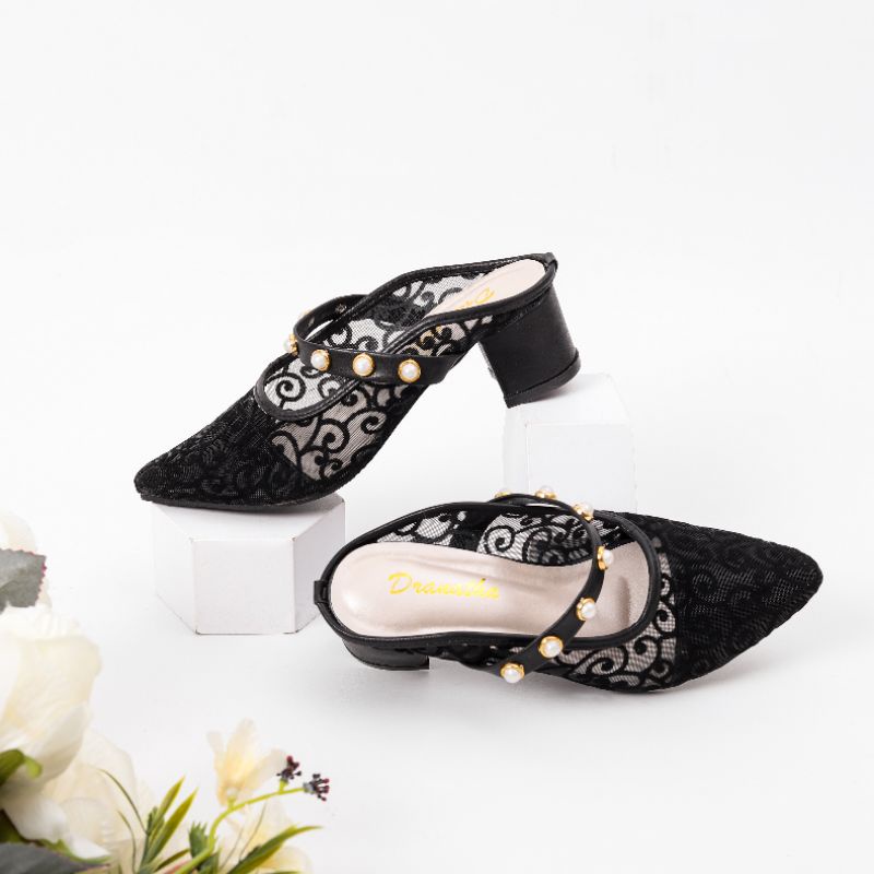 Mat bahan : Lace Tinggi sepatu : 5 cm Warna : Hitam, Moka