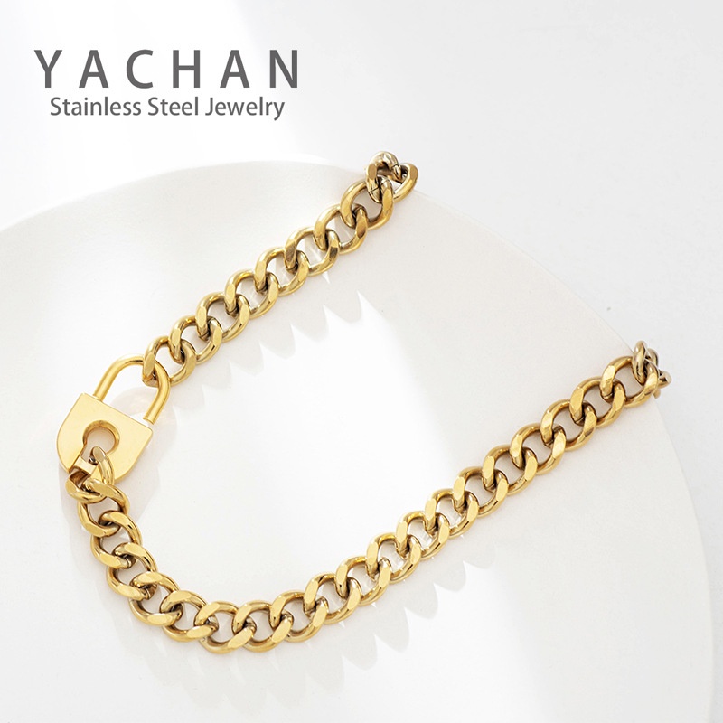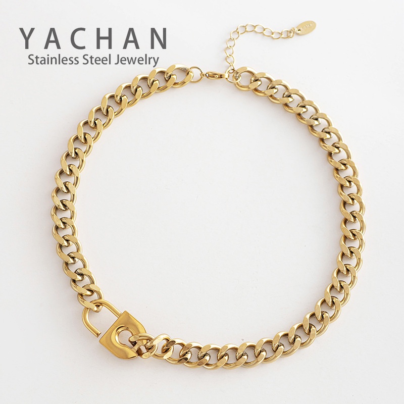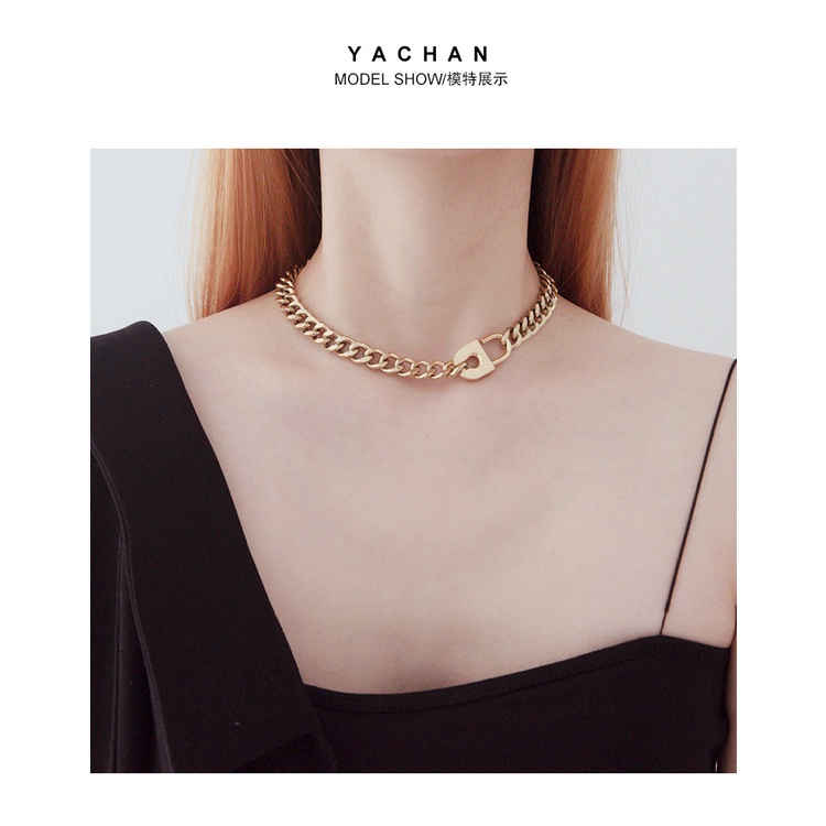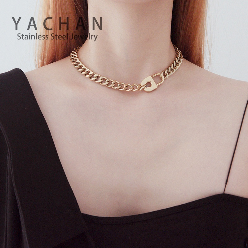 Detail Titanium baja klavikula kalung 14K emas disepuh kunci liontin Kuba link rantai Eropa dan Amerika fas