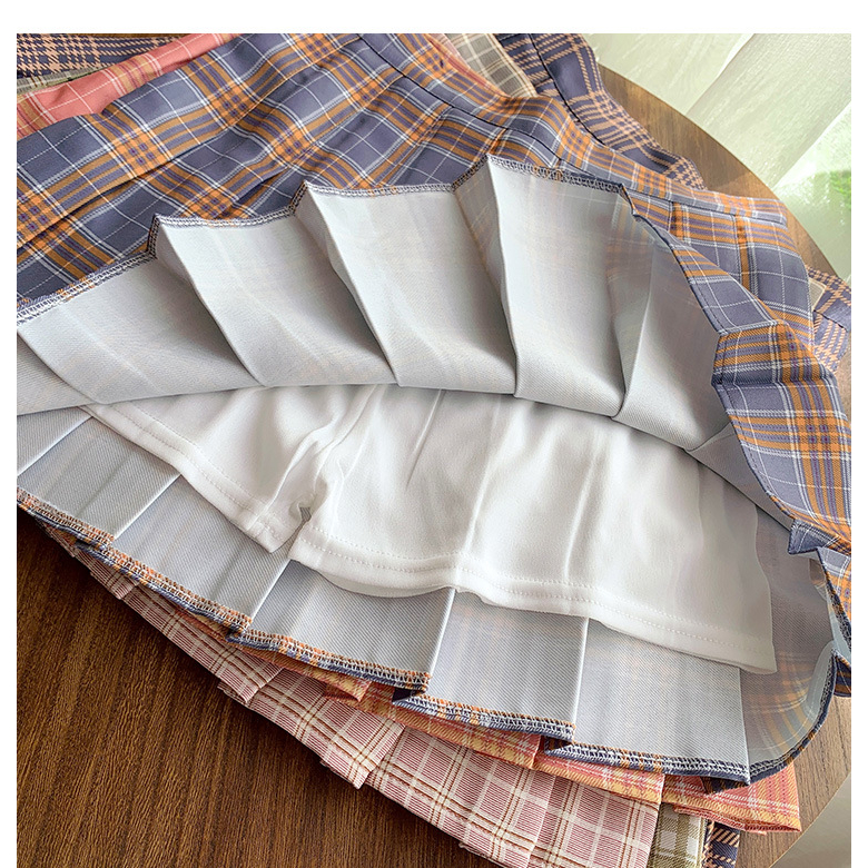 Detail TJM RK382 Korean Rok Mini Tartan Skirt Tennis Skirt Rok Lipit Motif Kotak Kotak