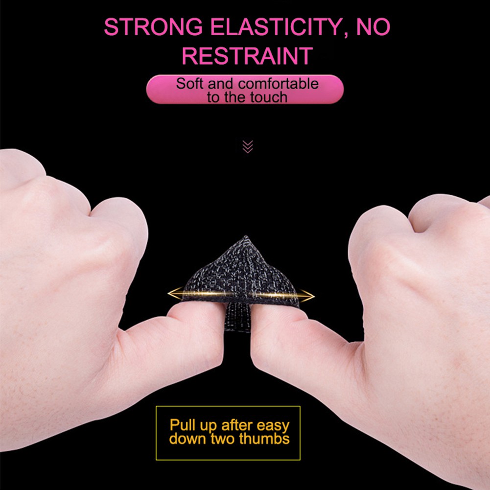 Light and breathable The finger sleeves are light and breathable, not stuffy. High quality conductive fiber, fully touch screen, sensitive, let you enjoy a more efficient gaming experience. Sweat proof and non-slip Flexible and smooth operation when playing games.it is sweat proof and non-slip, anti-fall, washable and reusable. High elastics Containing spandex material to increase elasticity, it adapts to thick or slender fingers. These kinds of mobile game finger sleeves support almost all Android or iOS touch screen phones, perfectly compatible for shooting games, including for PUBG, and more.