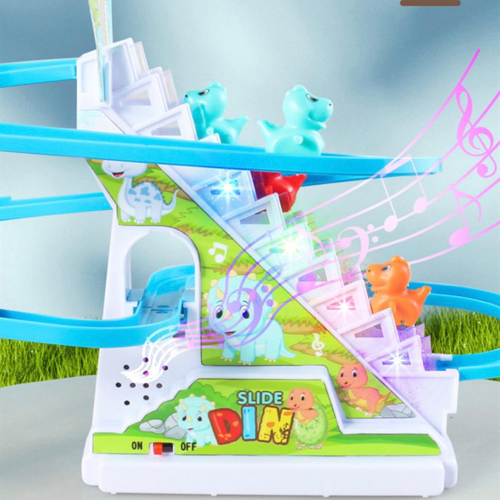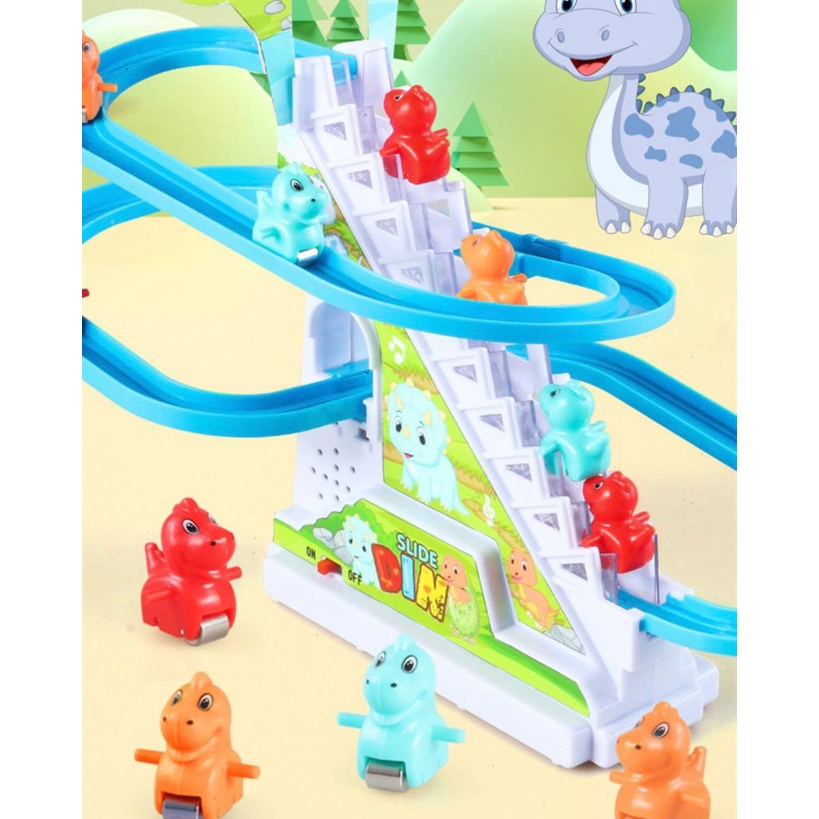 Mainan Seluncuran Otomatis Penguin Naik Tangga Dinosaurus Track Balap Berlampu dan Music / Mainan Luncuran Rail Mutar Auto Theme Park