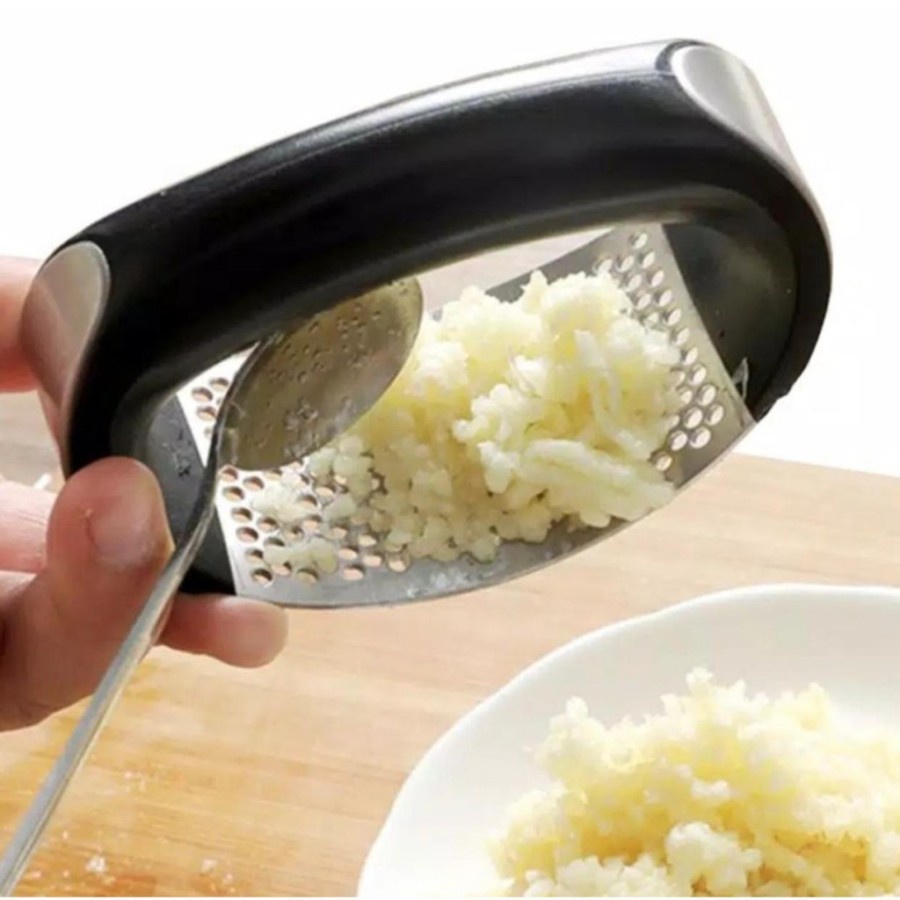 Alat penggerus penghancur bawang - garlic press Stainless - Impor - harga tertera adalah harga satuan - Ukuran: cek di gambar - bahan: Stainless - kegunaan: Alat penghancur bawang model baru, dari bahan stainless. Bahan stainless dayanya lebih kuat, menghancurkan bawang jadi lebih mudah.