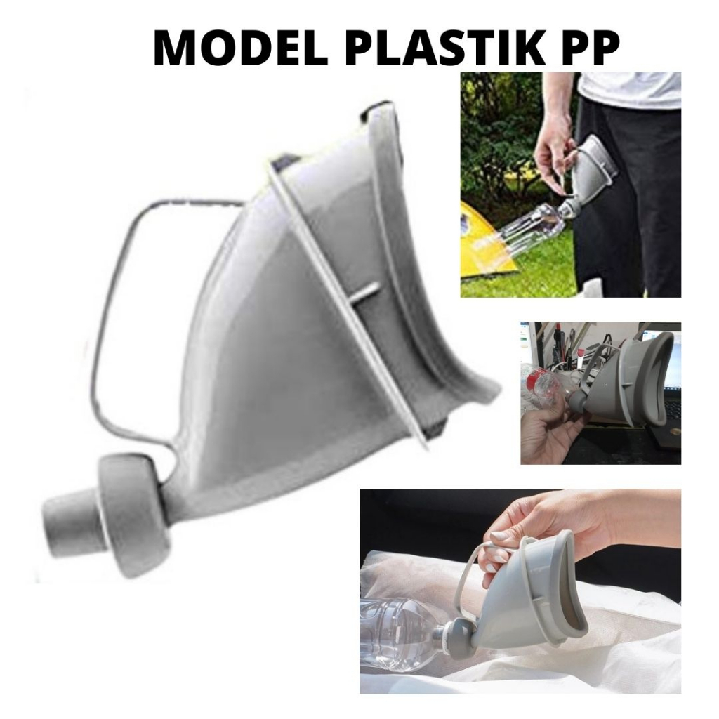Terdapat 2 Jenis yaitu : 1. Bahan Silikon yang lembut dan lentur, sehingga dapat disesuaikan senyaman mungkin dengan Anda dengan ukuran kurang lebih 13 cm. 2. Bahan Plastik PP Dimensi 14.5 x 10.5 x 7 cm, Moncong Urinator: 8 x 5 cm, Diameter Lubang 1 cm.