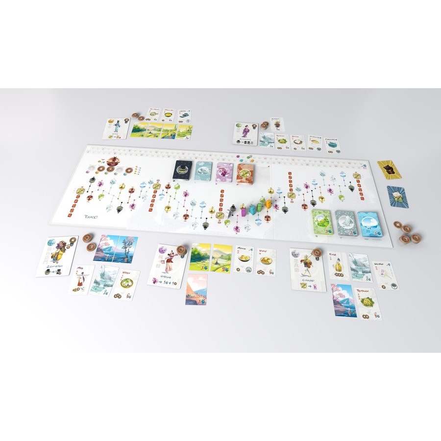 In Tokaido, each player is a traveler crossing the "East sea road", one of the most magnificent roads of Japan. While traveling, you will meet people, taste fine meals, collect beautiful items, discover great panoramas, and visit temples and wild places but at the end of the day, when everyone has arrived at the end of the road you'll have to be the most initiated traveler which means that you'll have to be the one who discovered the most interesting and varied things.