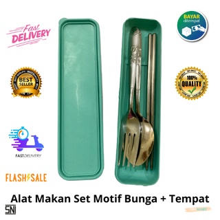 [BISA COD] PROMO Alat Makan Stainless Set Motif Bunga BONUS Tempat Penyimpan Set Alat Makan Sendok Bunga Garpu Bunga Sumpit Murah Terjangkau