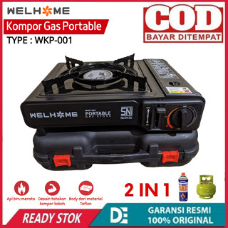 Welhome WKP-001 Kompor Gas Portable Camping 2 Fungsi Bisa Gas Kaleng & Gas LPG 3kg Kompor Gas Portable Serbaguna