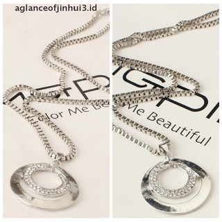 Kalung Rantai Panjang Lapis Silver Dengan Liontin Kristal Berlian Imitasi Untuk Wanita