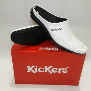 sepatu selop kickers hitam dan putih/sepatu sandal