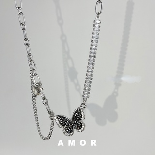Butterfly Kalung Rantai Desain Kupu-Kupu Aksen Zircon Warna Hitam Untuk Wanita
