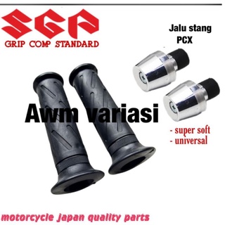 HANDGRIP STANDAR MODEL SZUKI+ JALU STANG PCX,SOGUN,SATRIA FU,NINJA BESI CROME UNIVERSAL BISA SEMUA MOTOR