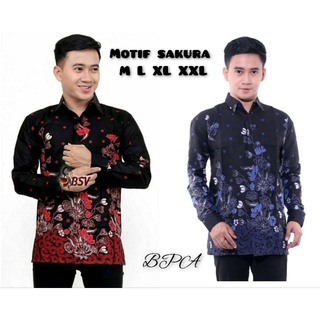 kemeja batik lengan panjang motif sakura size m l xl xxl xxxl