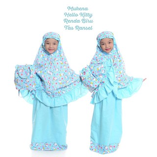 Mukena Anak Katun HK Renda Biru Tas Ransel