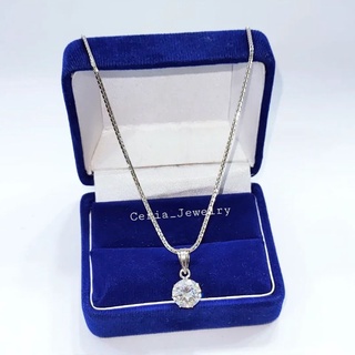Kalung Perak Asli Silver Wanita 925 Lapis Emas Putih Model Permata Putih - Kalung Wanita Anti Karat - Kalung Perak Asli Murni Original 925