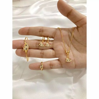 set anak hello kitty gold perhiasan anak satu set gelang kolong kalung cincin anting terlaris