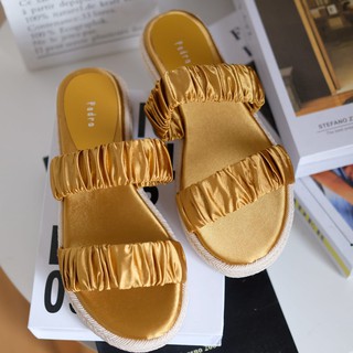 SANDAL WANITA FLAT METALLIC SANDALS GOLD ZS528 SLIP ON PREMIUM IMPORT