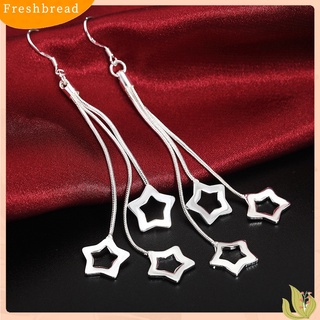 [Fresh] Anting Kait Gantung Panjang Bentuk Bintang Lapis Silver untuk Wanita