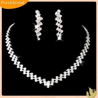 [Fresh] Set Perhiasan Kalung + Anting dengan Hiasan Berlian Imitasi untuk Wanita