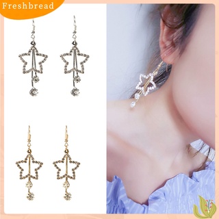 [Fresh] Anting Kait Gantung Wanita Bentuk Bintang Aksen Berlian Imitasi + Rumbai untuk Pesta