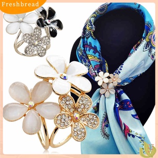 [ TERLARIS]Women Shiny Rhinestone Inlaid Flower Scarf Ring Clip Holder Brooch Pin Buckle