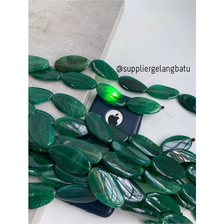 batu alam Penden simba oval hijau tua serat 2 x 4 cm dark green agate