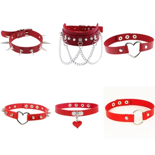 Kalung Choker Rantai Rumbai Warna Merah Bahan Metal Gaya Punk Untuk Pria Dan Wanita
