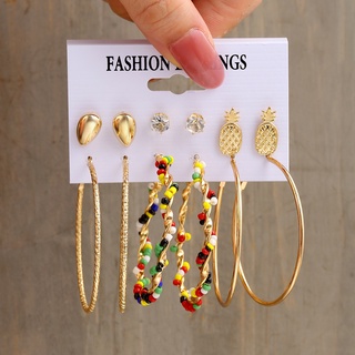 Set Perhiasan Anting Bentuk Lingkaran Besar Warna-Warni Gaya Vintage Untuk Wanita