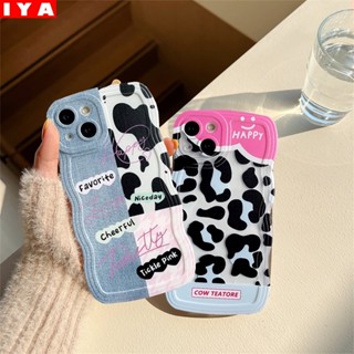 IPHONE Case Kompatibel Untuk Iphone14 13 12 11 Pro MAX iPhone7 8plus 6s Plus XR 14Plus XS MAX Wavy Edge Denim Patch Happy Leopard Print Lembut Pasangan Penutup Belakang
