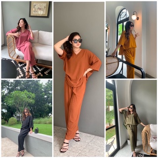JOSHIN Setelan Cp wanita jumbo - oneset oversize v neck - set dailywear wanita crinkle