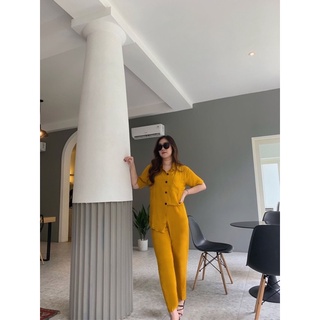 JOSHIN Suzy Set - Setelan Wanita Joger Polos Linen Rami