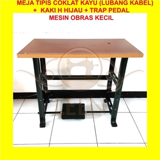 Meja Tipis & Kaki H Hijau Trap Pedal SET Mesin Jahit Obras Kecil LEEN