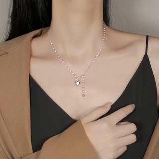 S925 Rantai perak murni Cinta Kalung Kecil Bentuk Hati Rantai Rantai Cardioid Korea Fashion Perhiasan Bebas Alergi