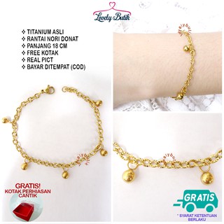 Lovelybutik Gelang Tangan Wanita Titanium Anti Luntur Model Nori donat Bol4 Uk 18 cm BONUS KOTAK PERHIASAN